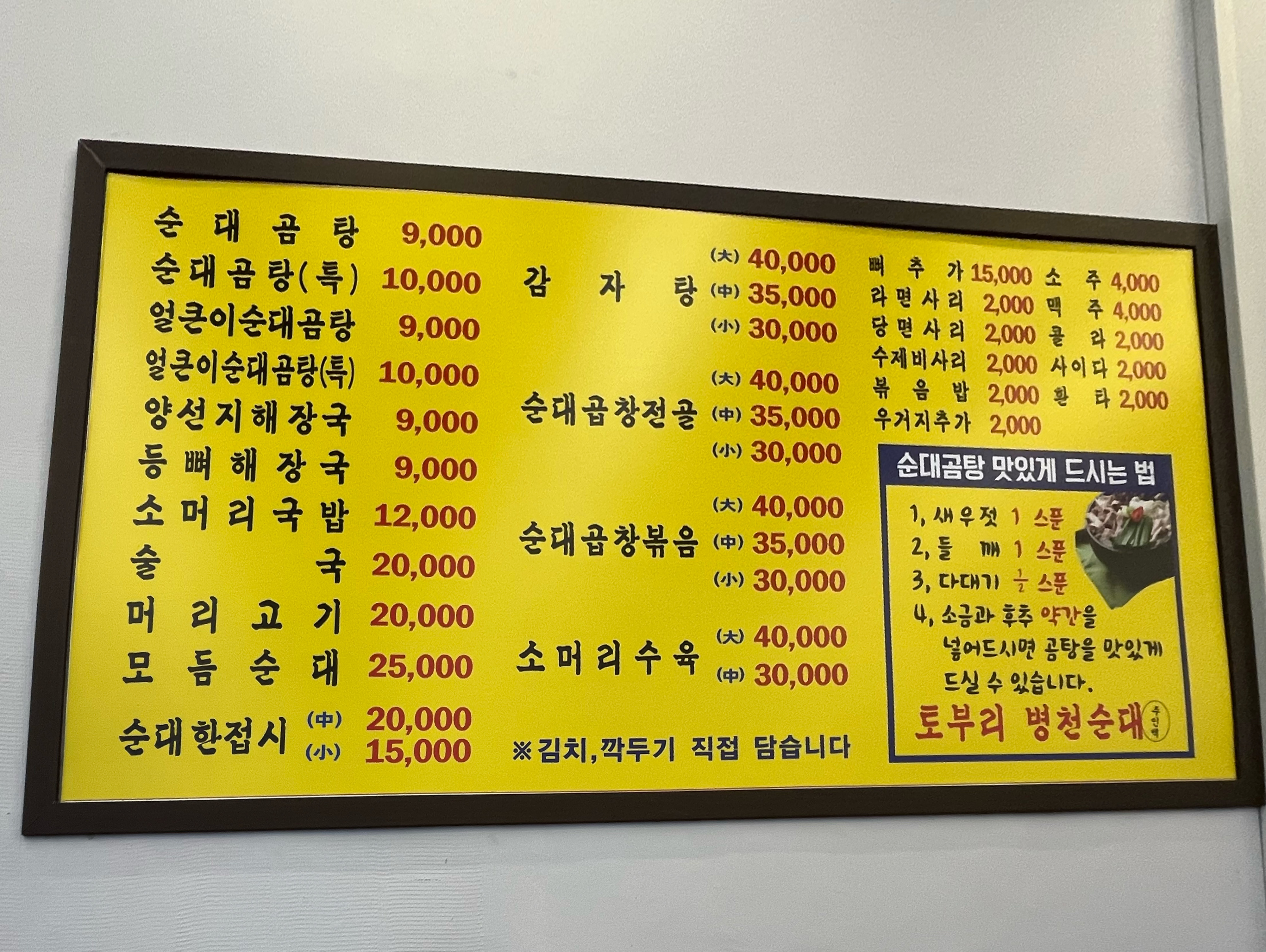 감자탕만 메뉴판에 있는게 아니라 순대곰탕과