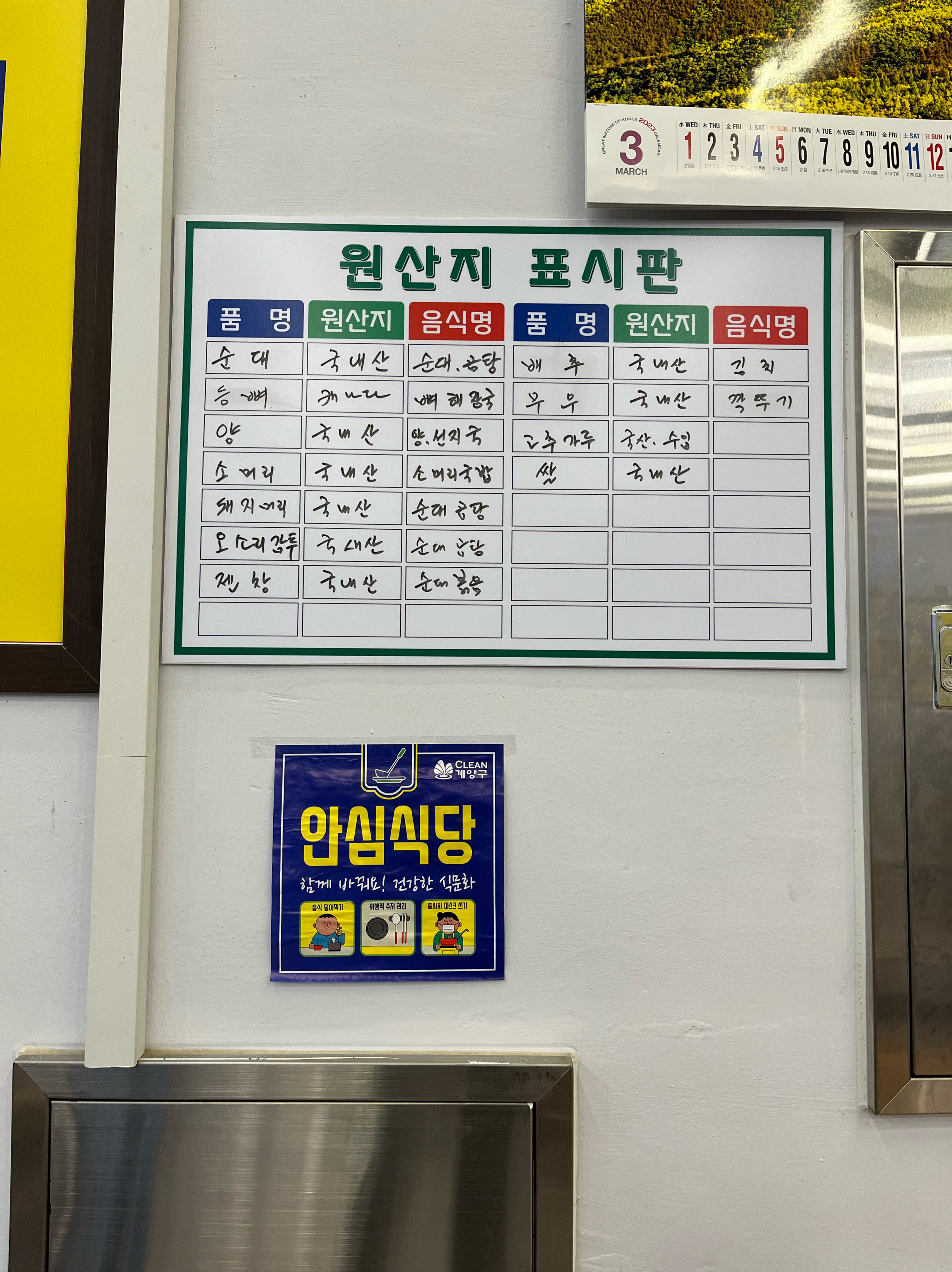 메뉴판 옆에 잘보이는데다 원산지를 적어두어