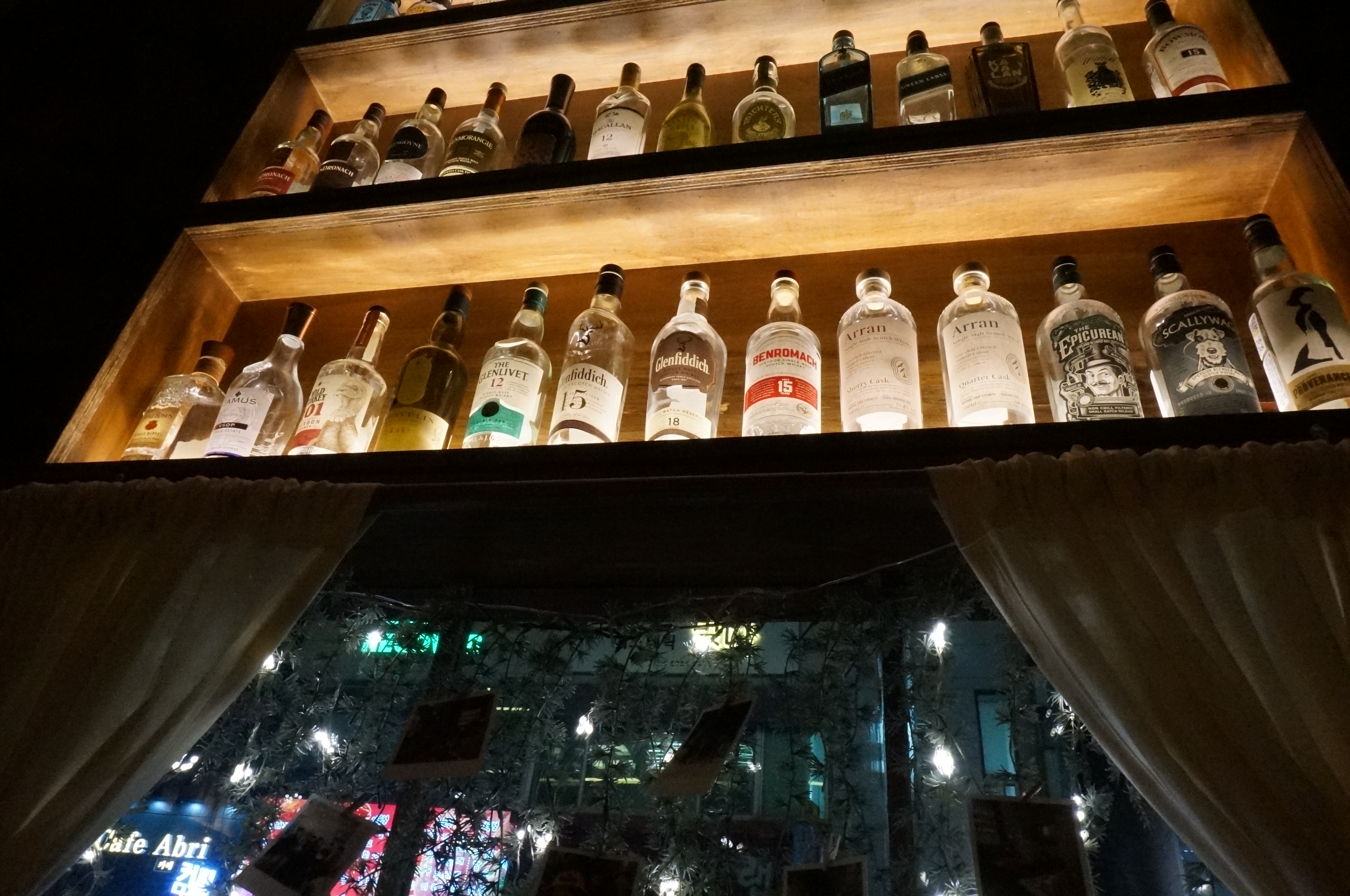 위스키병에 조명을 해놔서인지 분위기가 너무 좋았어요.