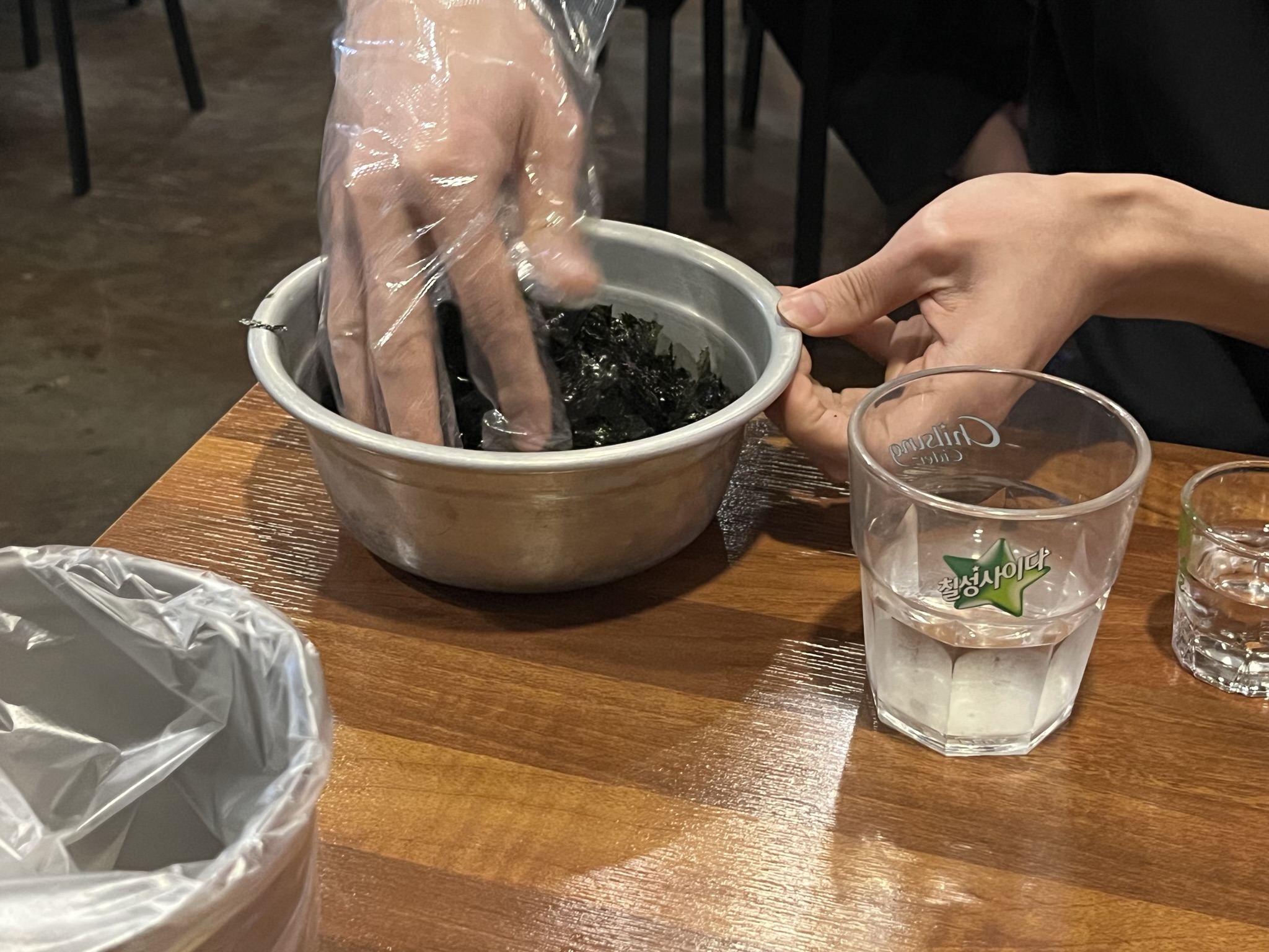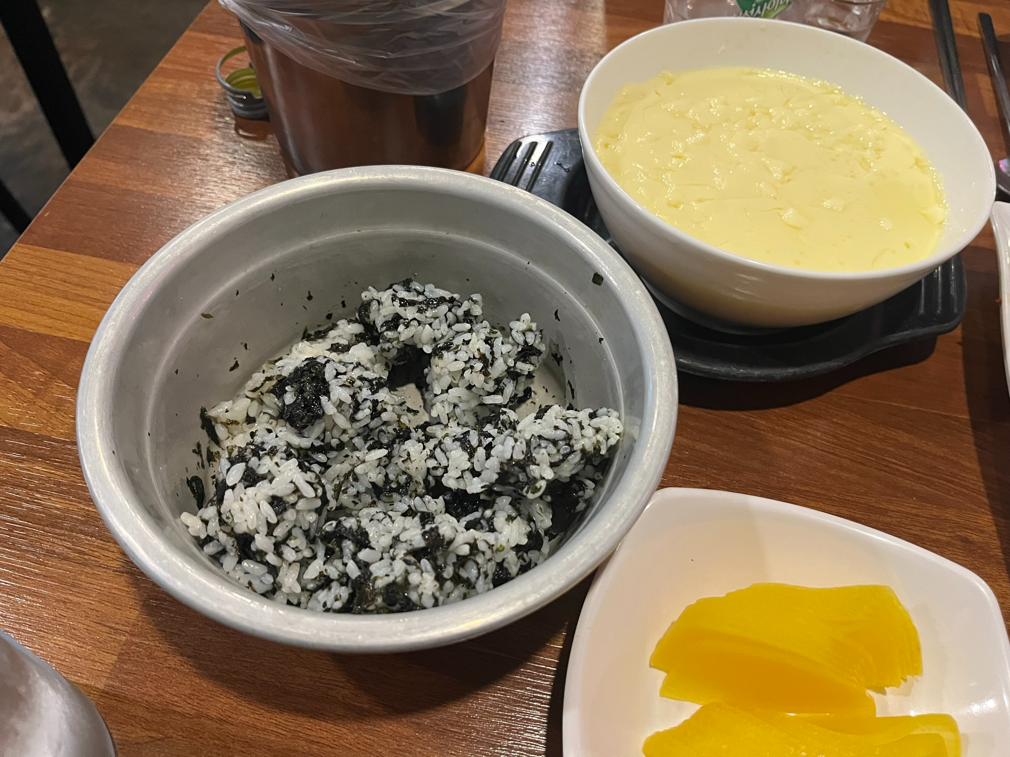 기본반찬으로는 미역국, 단무지가 나옵니다.